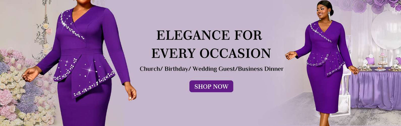 AOMEIDRESS Elegant Peplum Midi Dress with Beading for Party Church