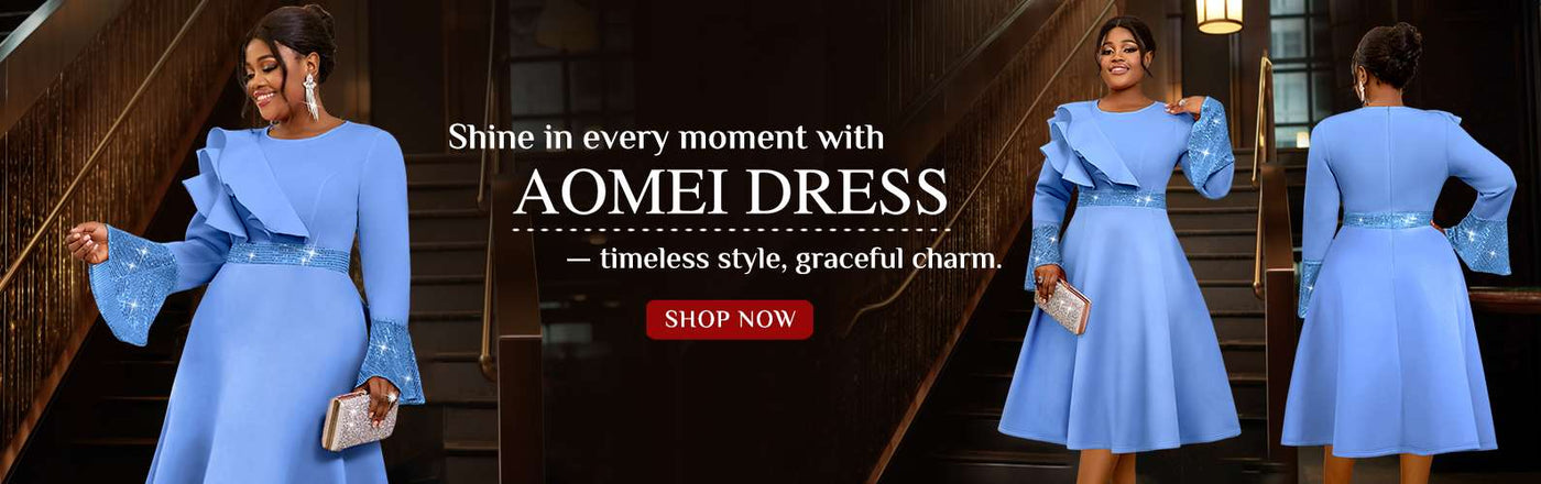 AOMEIDRESS Office Church Party Dresses Beaded Ruffles 3D Decoration