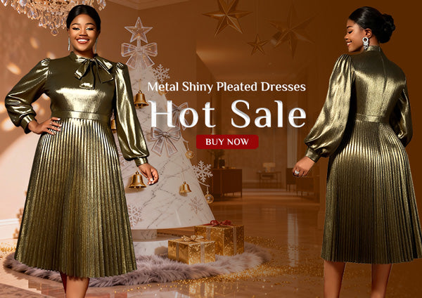 AOMEIDRESS Elegant Autumn Winter Midi Pleated Dress for Office Church