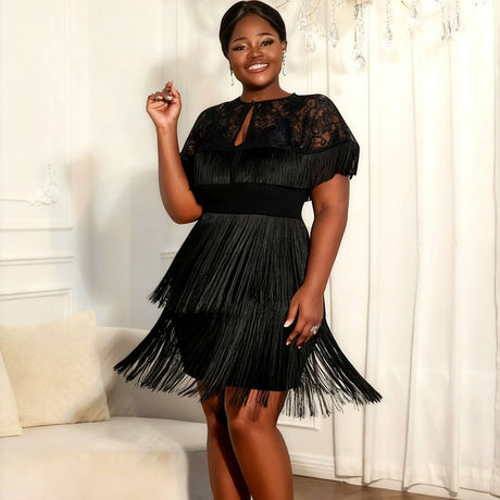 AOMEIDRESS Elagent Evening Party Dress with Fringe Beading Long Sleeve
