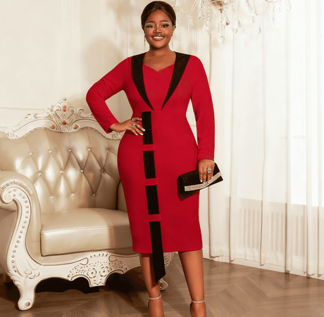 AOMEIDRESS Elegant Business Casual Beaded Dress For Women Package Hip
