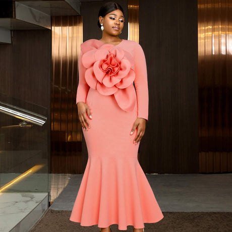AOMEIDRESS Elegant Wedding Guest Dress Package Hip O Neck 3D Flower