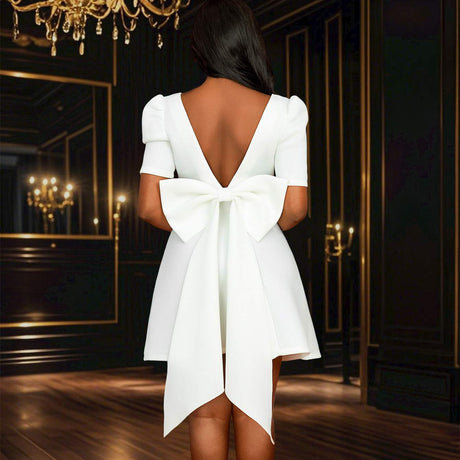 AOMEIDRESS Elegant Wedding Guests Dress Big Bow Strapless Package Hip