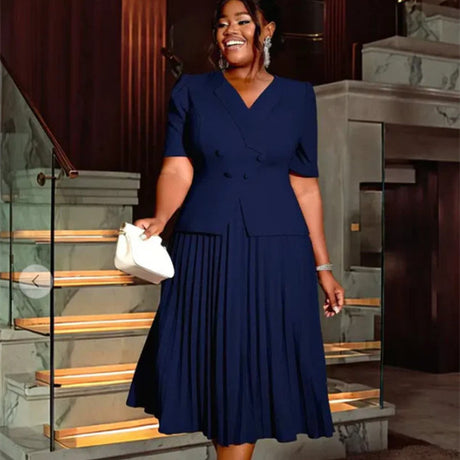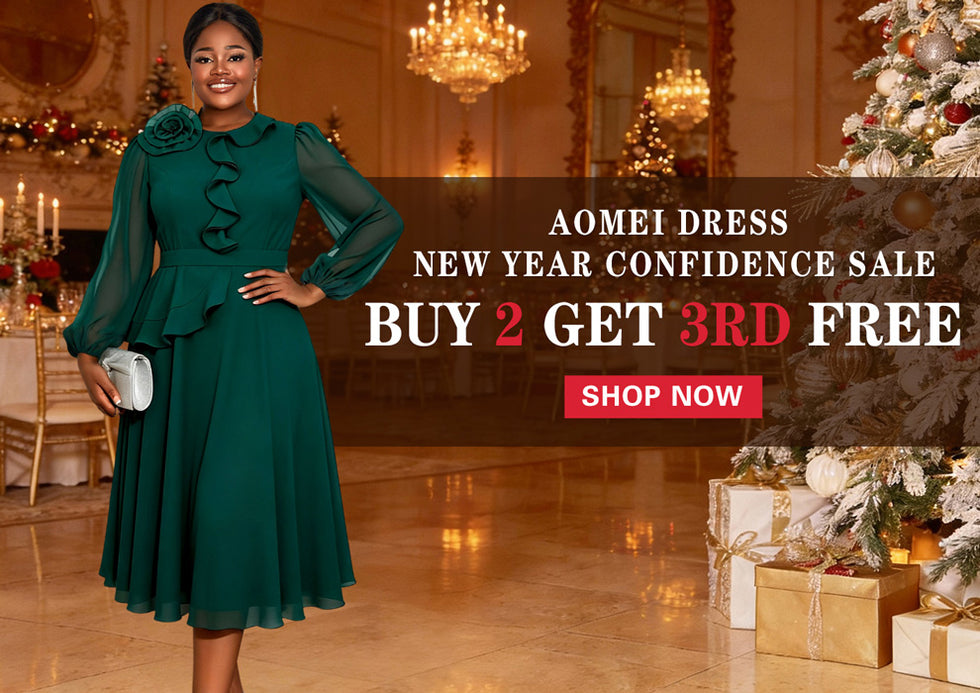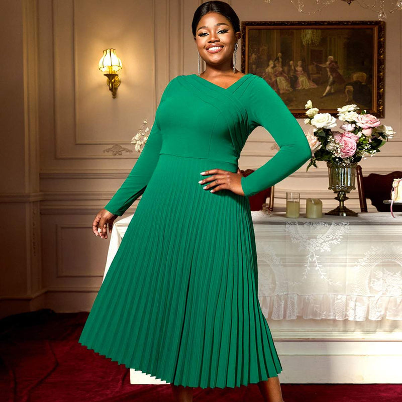 AOMEIDRESS Elegant Autumn Winter Midi Pleated Dress for Office Church