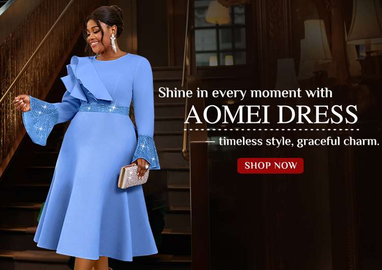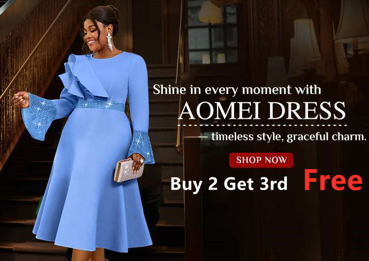 AOMEIDRESS Office Church Party Dresses Beaded Ruffles 3D Decoration