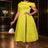 AOMEIDRESS Green Pleated Dress Irregular Collar Half Sleeve with Bows