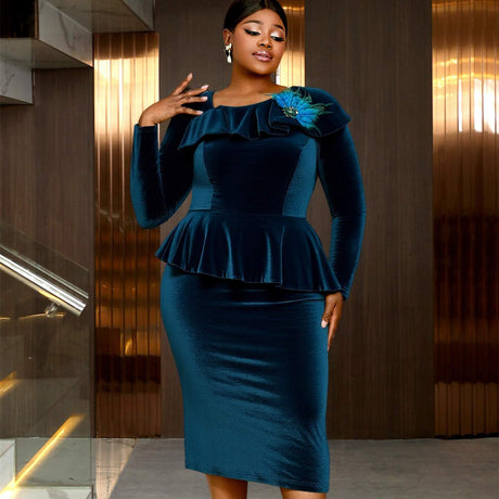 Elegant Church Dresses Long Sleeves Mermaid Ruffles for Women Office Ladies Work Business Party