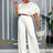 AOMEIDRESS Elegant Set Satin Puff Sleeve Top Wide Leg Pants for Party