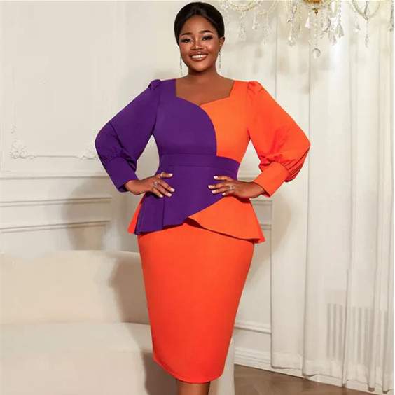 AOMEIDRESS Elegant Peplum Dress with Long Sleeve for Church Office