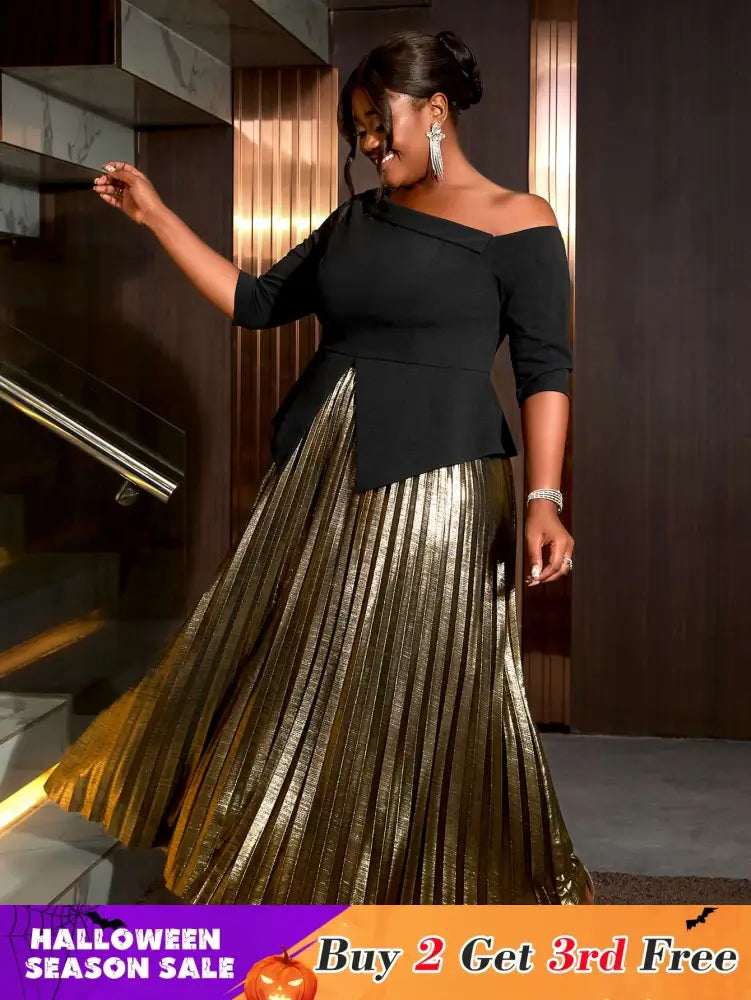 AOMEIDRESS Women Skirts Sets Irregular Black Half Sleeve High Elastic Waist - Black / 1XL is backordered and will ship as soon as it is back in stock.