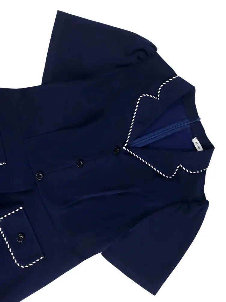 AOMEIDRESS Colorblock Trim Collar A Line Dress Short Sleeve 50s Style Navy Blue Dress