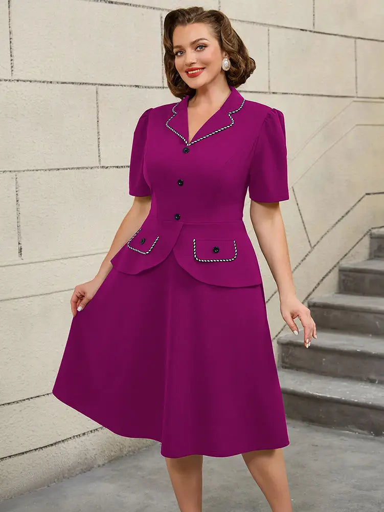 AOMEIDRESS Colorblock Trim Collar A Line Dress Short Sleeve 50s Style Navy Blue Dress - Navy / S is backordered and will ship as soon as it is back in stock.