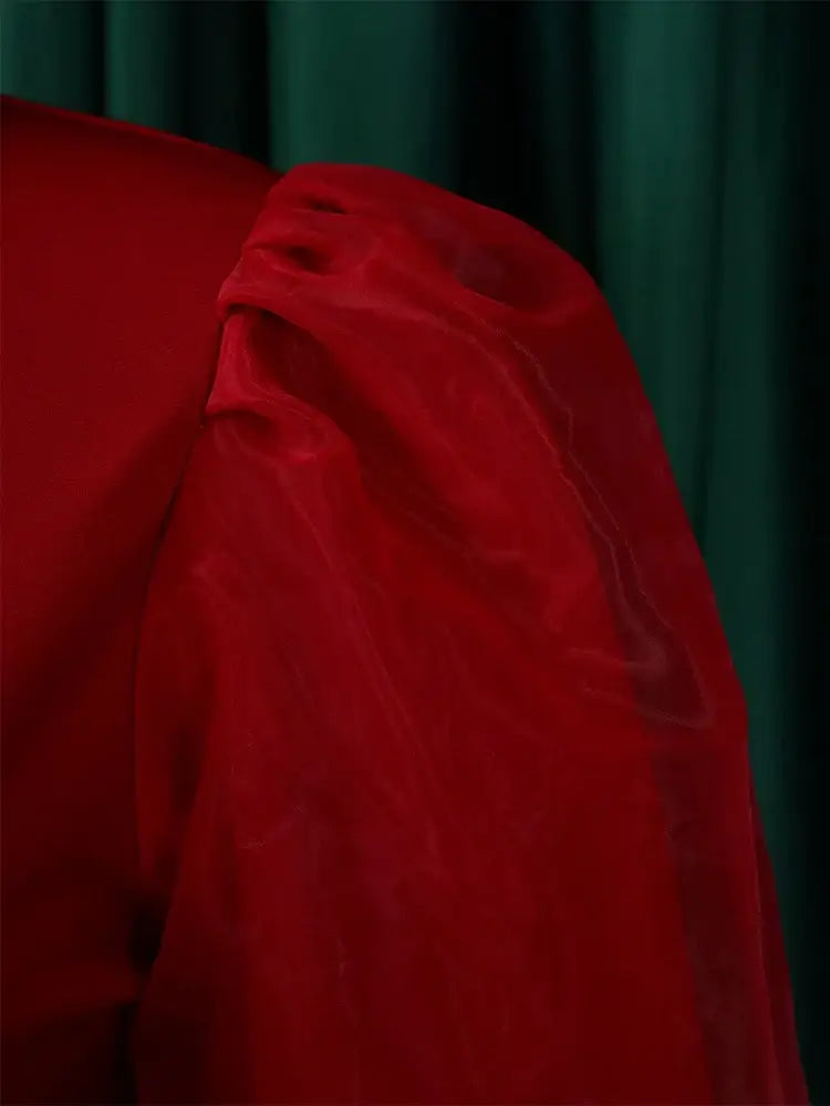 Women Long Lantern Sleeves Dress Turn Down Collar Autumn Fashion