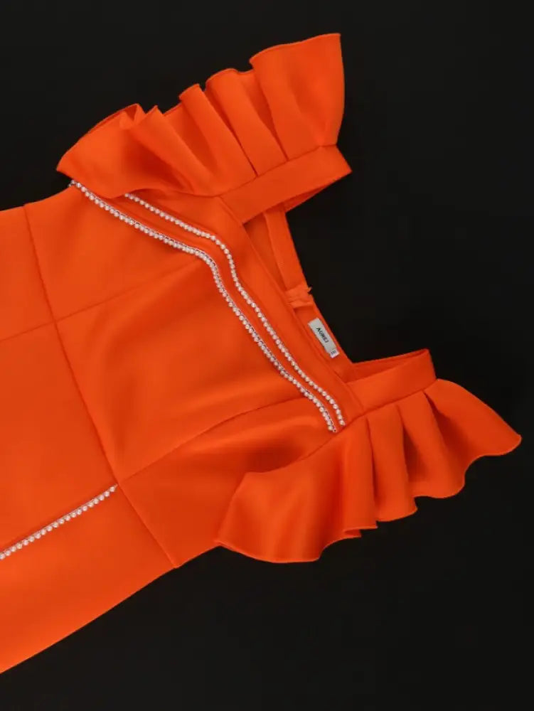 AOMEIDRESS Bodycon Orange Dress Square Collar Flying Sleeve Beading - Orange / S is backordered and will ship as soon as it is back in stock.