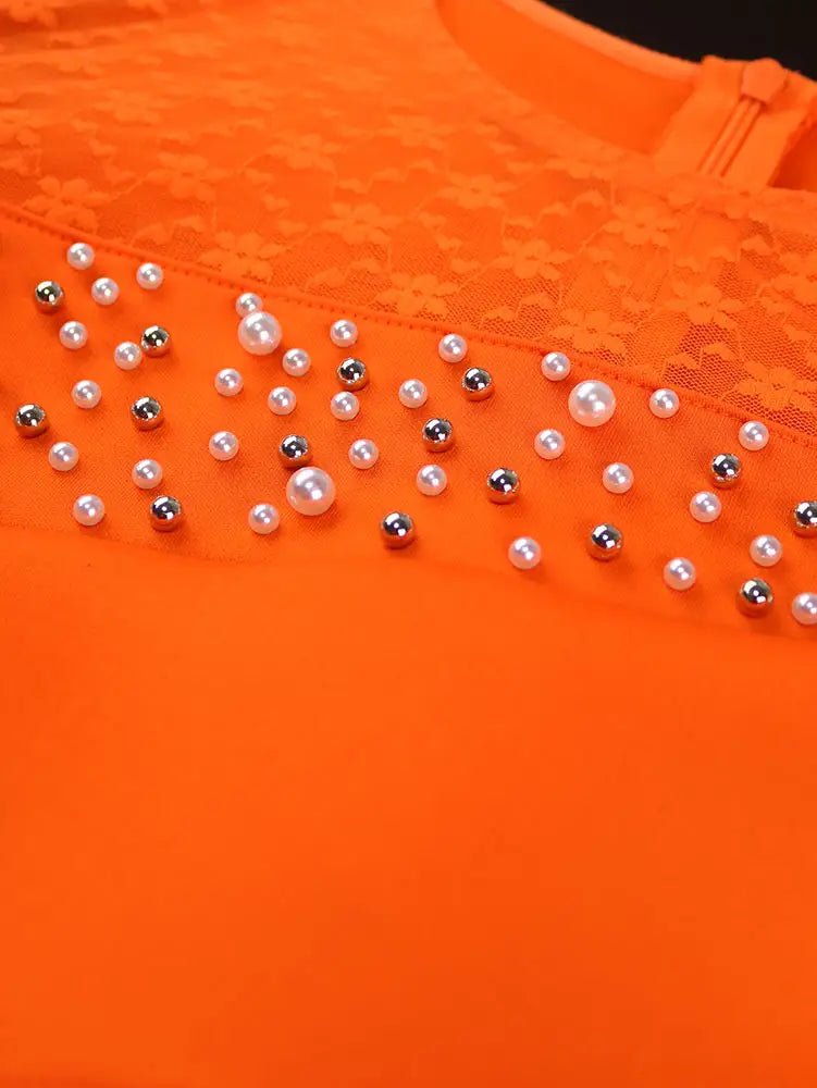 AOMEIDRESS Bodycon Wedding Guest Party Dress With Beading Lace Sleeve - Orange / S is backordered and will ship as soon as it is back in stock.