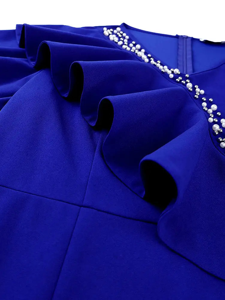 AOMEIDRESS Elegant Midi Ruffle Dress With Beading for Party Wedding - Blue / S is backordered and will ship as soon as it is back in stock.