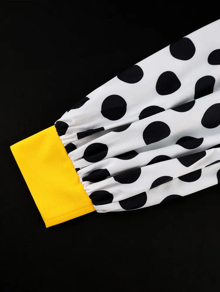 AOMEIDRESS Elegant Yellow Wide Leg Jumpsuit Contrast Dot Puff Sleeves Yellow / L