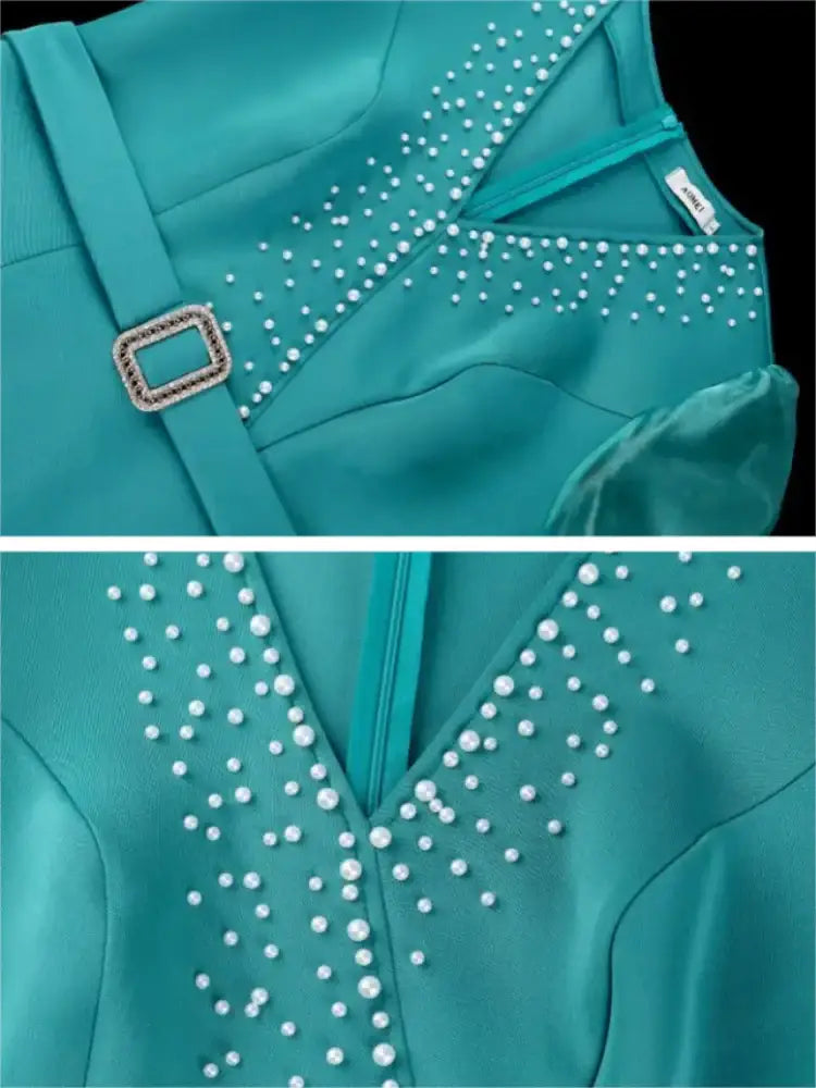 AOMEIDRESS Green V Neck Midi Dresses Beaded See Through Irregular - Green / S is backordered and will ship as soon as it is back in stock.