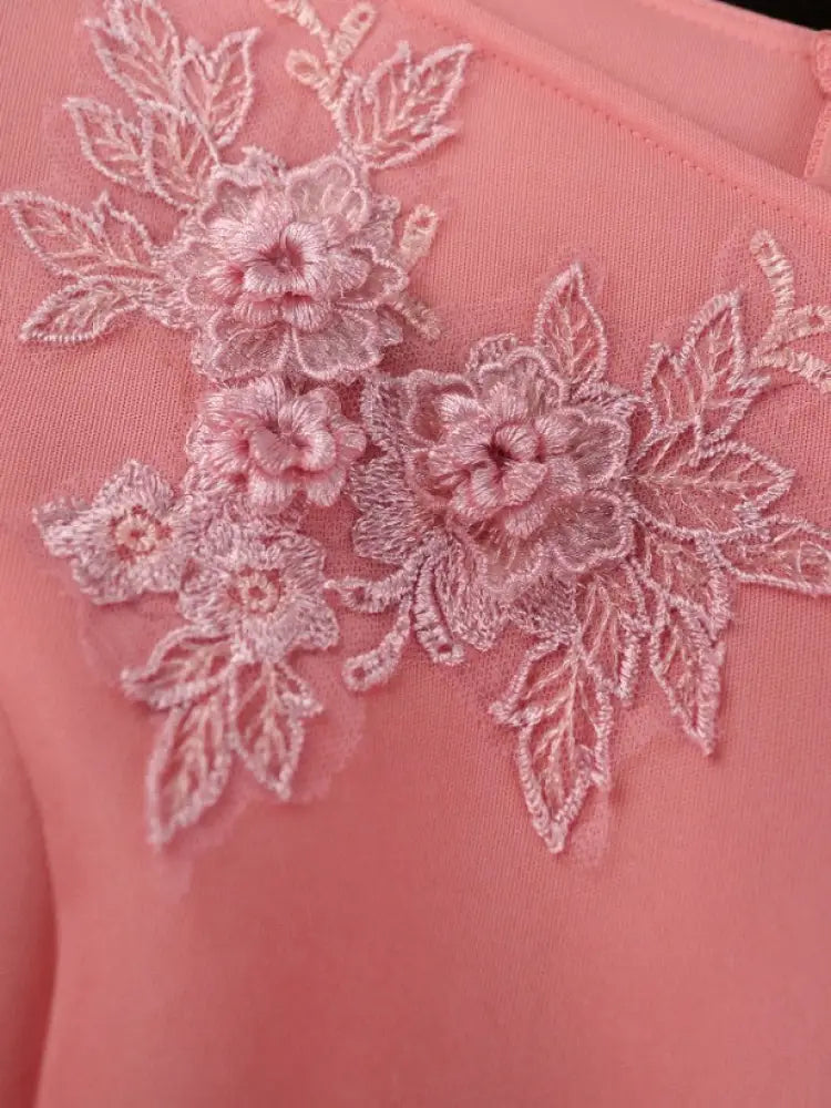 AOMEIDRESS Pink Sweeet Dresses V Neck Puff Sleeves Appliques Ruffles