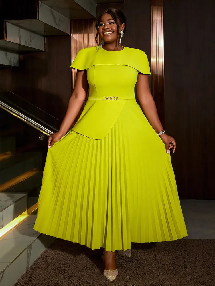 AOMEIDRESS Elegant A Line Church Dresses O Neck Pleated Cape Sleeve