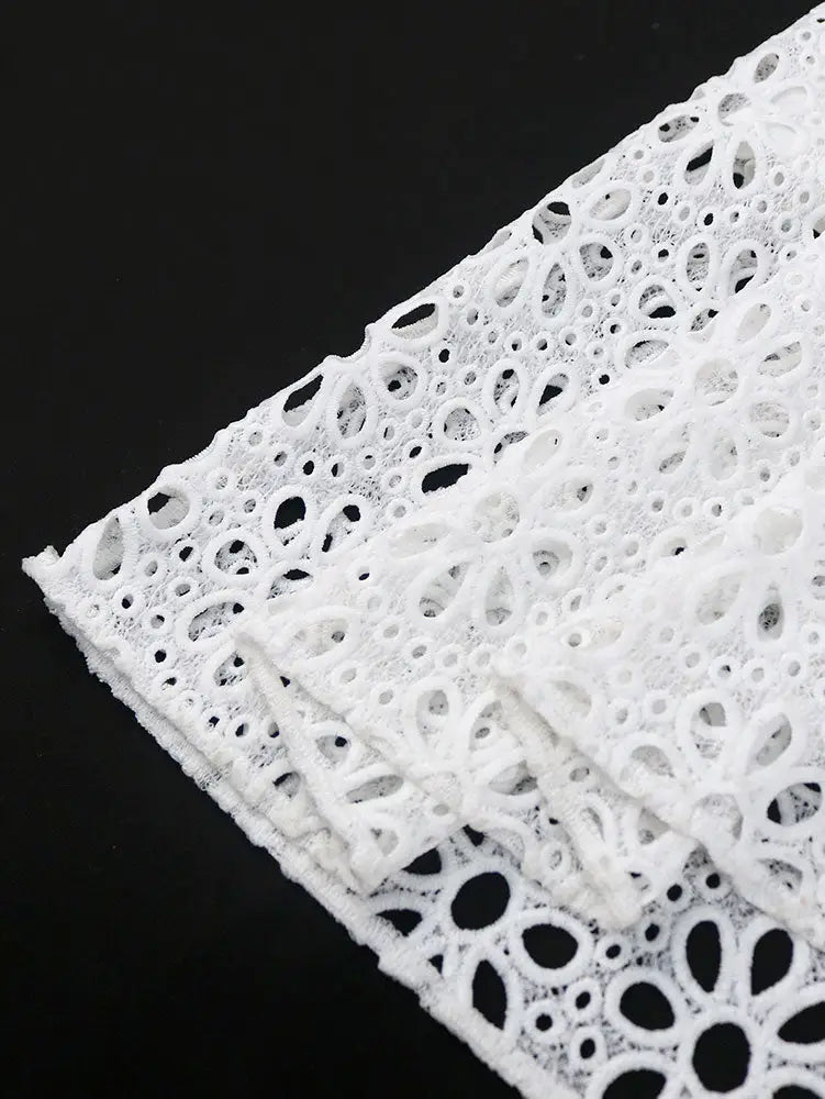 AOMEIDRESS Elegant Lace Midi A Line Wedding Guests Dress Puff Sleeve White / 0XL