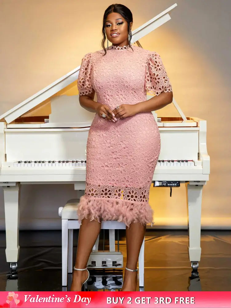 AOMEIDRESS Pink Lace Dresses for Women Bodycon Feather Patchwork - Pink / S is backordered and will ship as soon as it is back in stock.