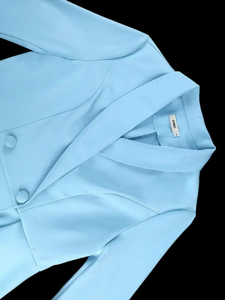 AOMEIDRESS Elegant OfficeTwo Piece Set Peplum Blazer Pencil Skirt LightBlue / S