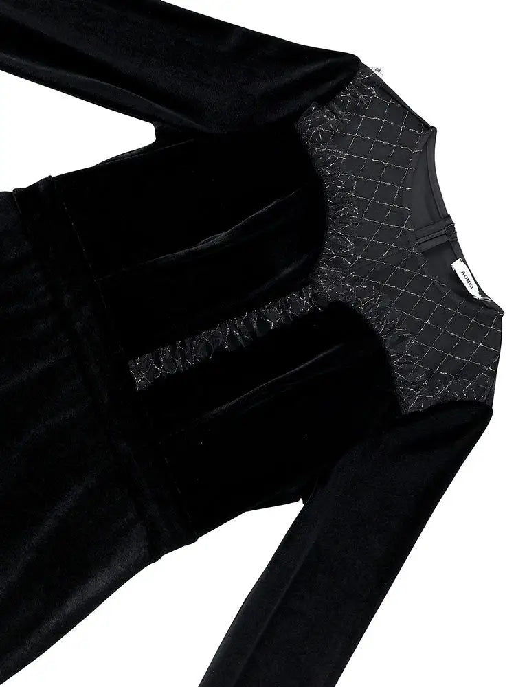 AOMEIDRESS Elegant Black Velvet Dress Tulle Bodycon Evening Party