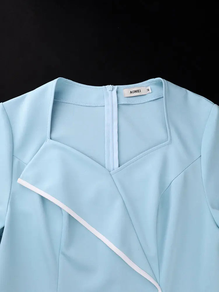 AOMEIDRESS Elegant Package Hip Dress Sweetheart Neck Flare Sleeves - LightBlue / S is backordered and will ship as soon as it is back in stock.