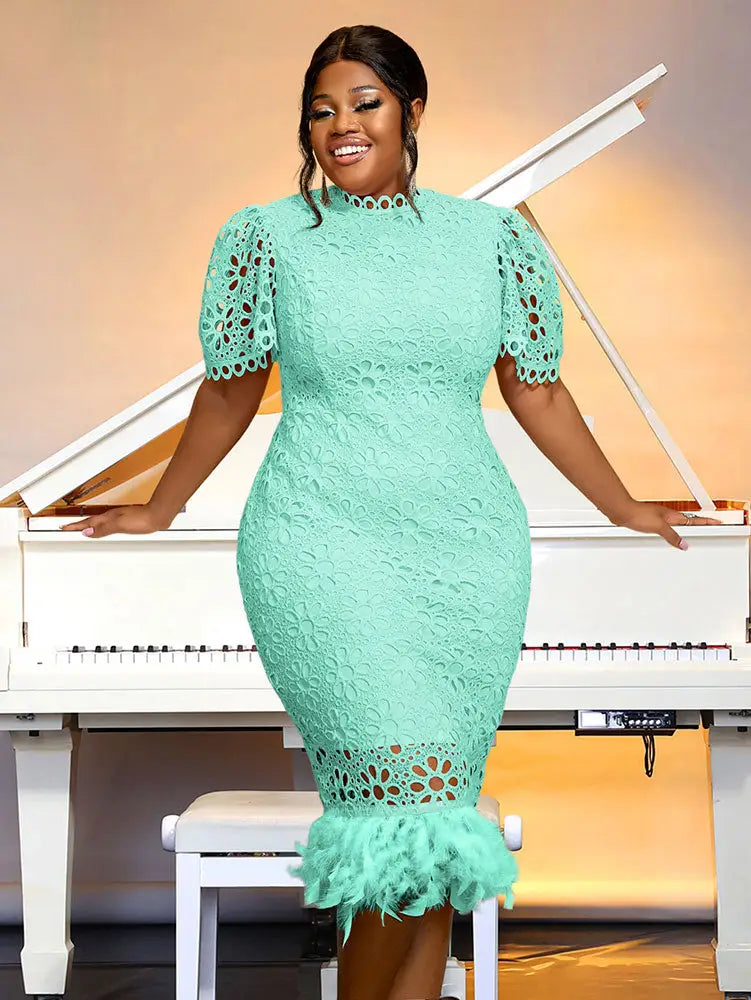 AOMEIDRESS Pink Lace Dresses for Women Bodycon Feather Patchwork