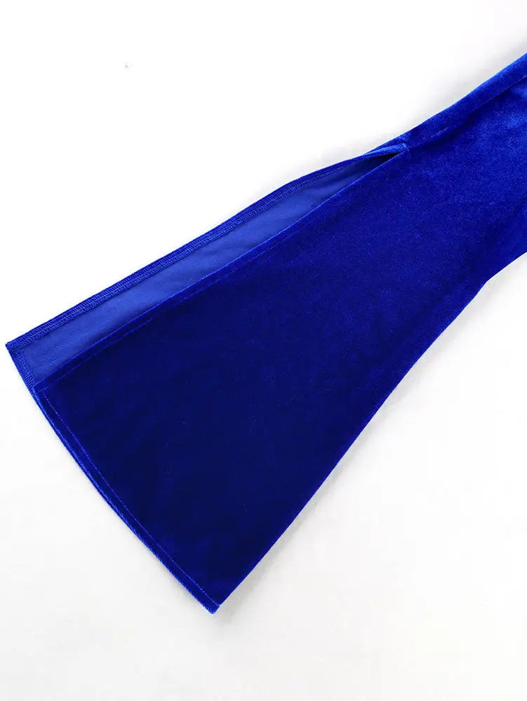 AOMEIDRESS Women Velvet Bodycon Dress Flare Sleeve Split Dinner Gowns Blue / S