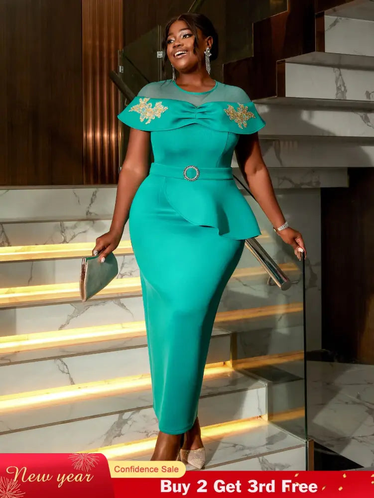 AOMEIDRESS Women's Mesh Dress Round Neck Open Sleeve Stickers Slimming - Green / S is backordered and will ship as soon as it is back in stock.