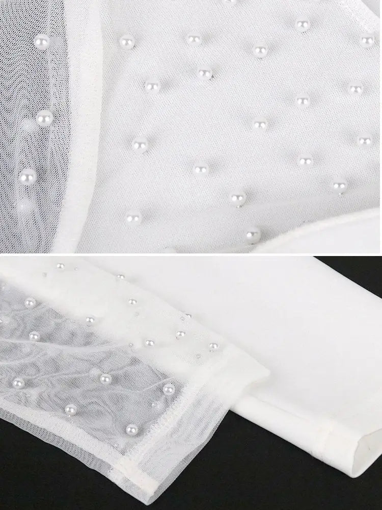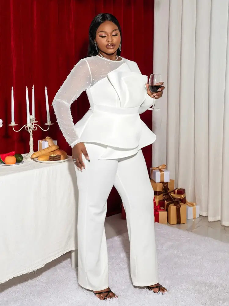 AOMEIDRESS Plus Size Bead Patchwork Party Jumpsuit Long Wide Leg Rompers - White / S is backordered and will ship as soon as it is back in stock.