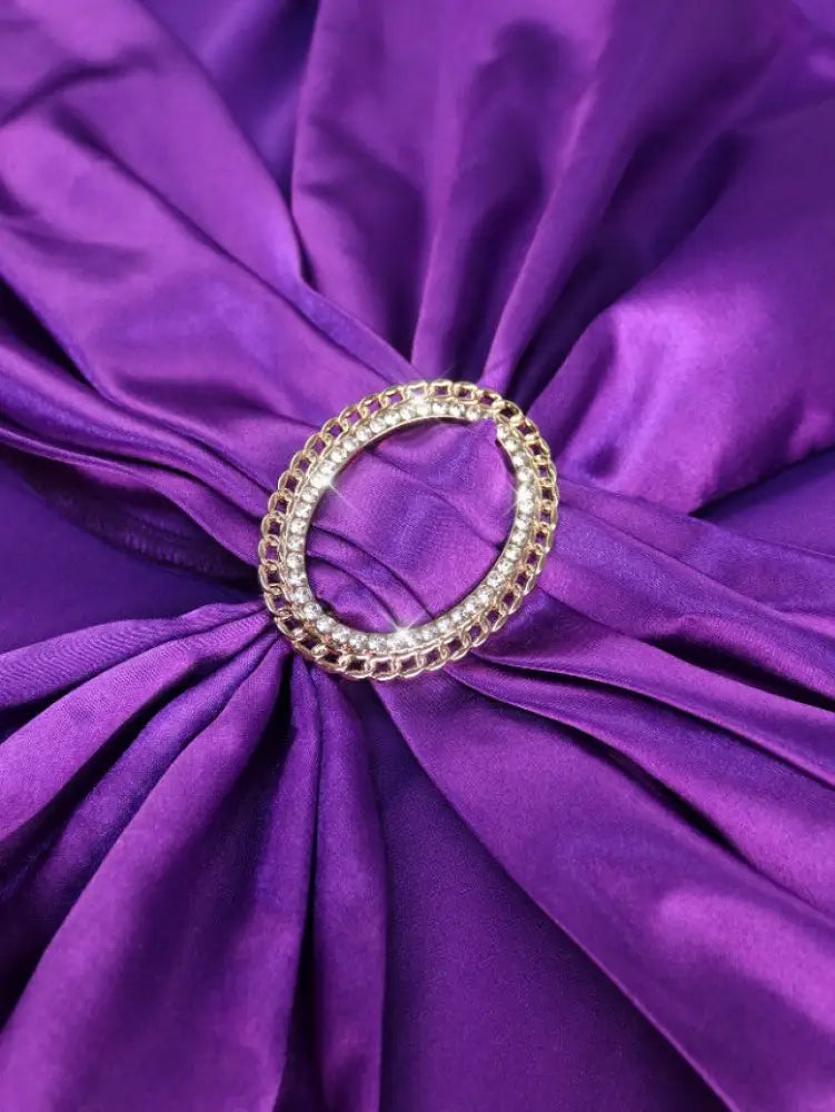 AOMEIDRESS Purple Asymmetrical Neck Shiny Patchwork Big Bow Jumpsuits