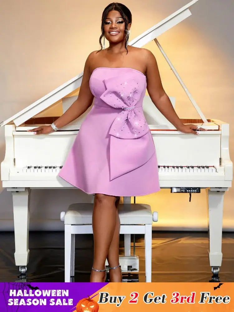 AOMEIDRESS Lavender Strapless Big Bow Beading High Waist A Line Dress