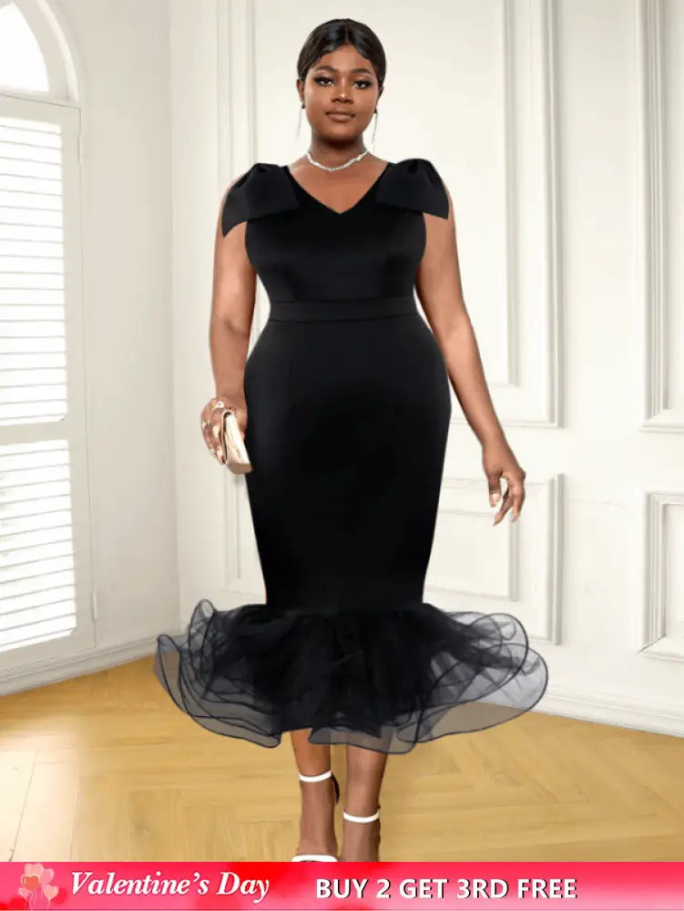 AOMEI Midi Sleeveless Bow V Neck Mermaid Dress
