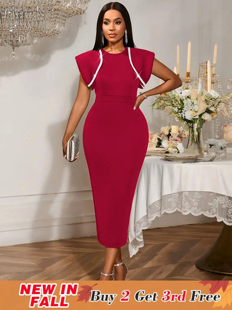AOMEIDRESS Bodycon Sequins Dress for Wedding Guest Party Christmas DarkRed / S