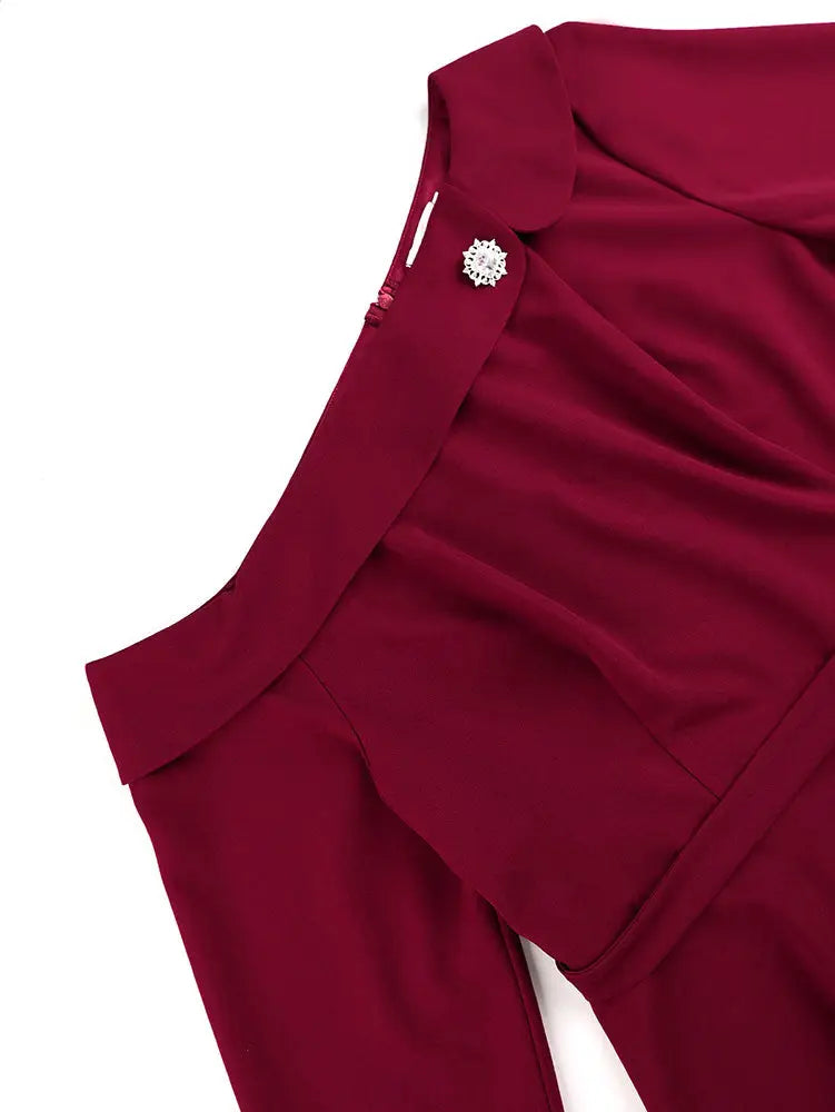 AOMEIDRESS Elegant Co-Ords for Christmas Wedding Slanted Shoulder Top - Wine / S is backordered and will ship as soon as it is back in stock.