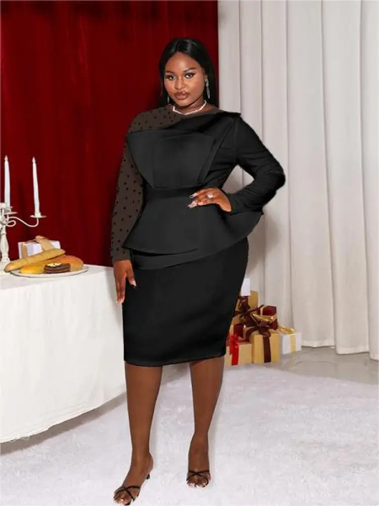 AOMEI Sexy Long Sleeve Bead Mesh Patchwork Dress