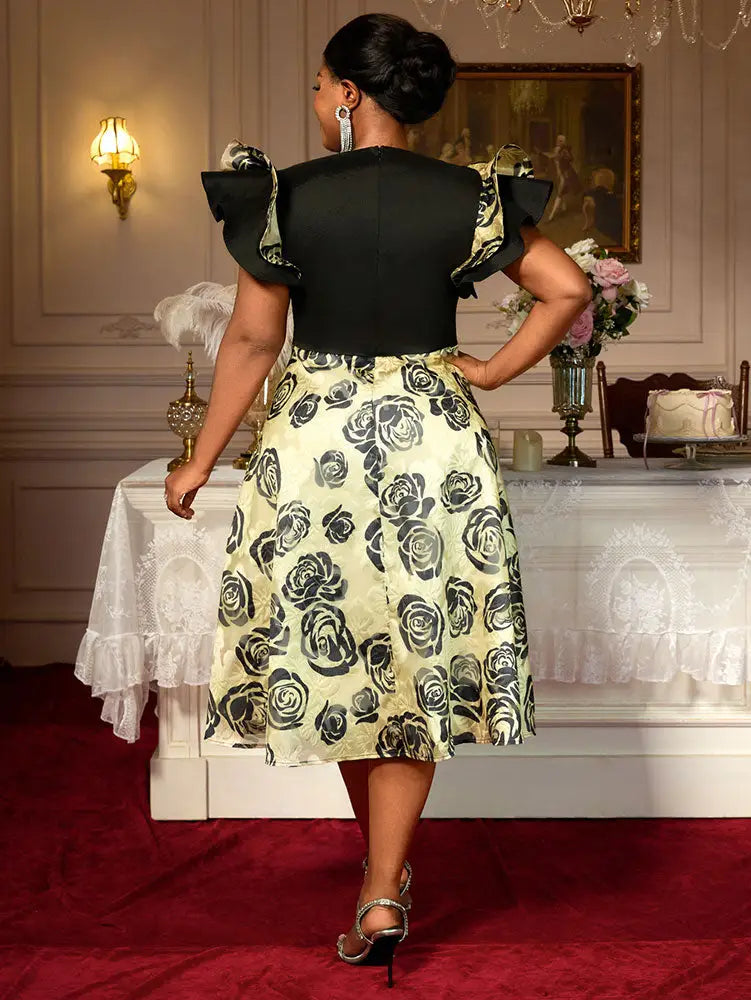 AOMEIDRESS A Line Jacquard Midi Wedding Guests Dresses Pleated Ruffles Black / S