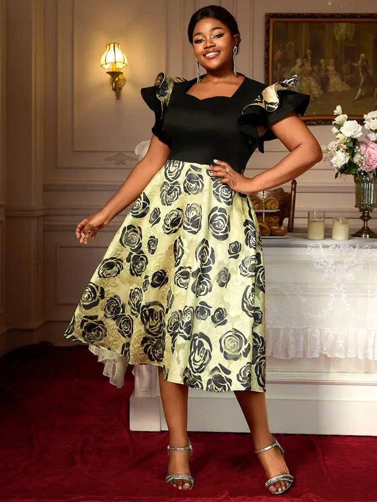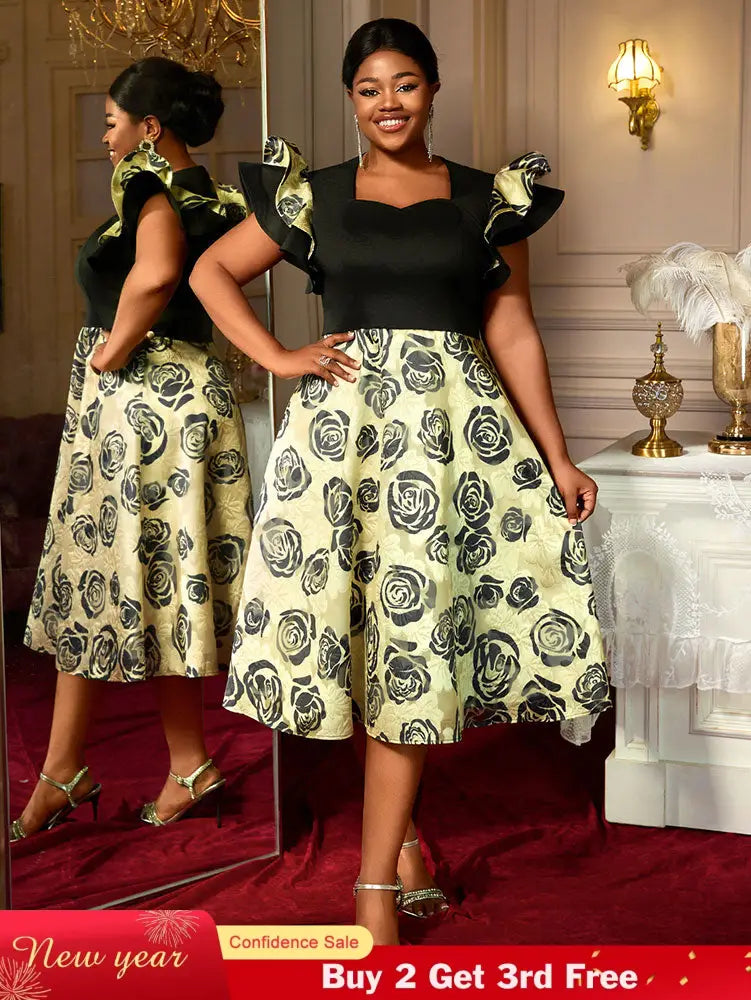 AOMEIDRESS A Line Jacquard Midi Wedding Guests Dresses Pleated Ruffles