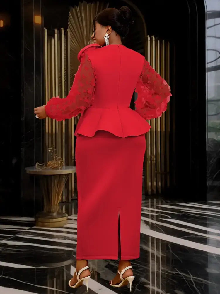 AOMEIDRESS Elegant Party Dress with 3D Flower Sheer Lantern Sleeve