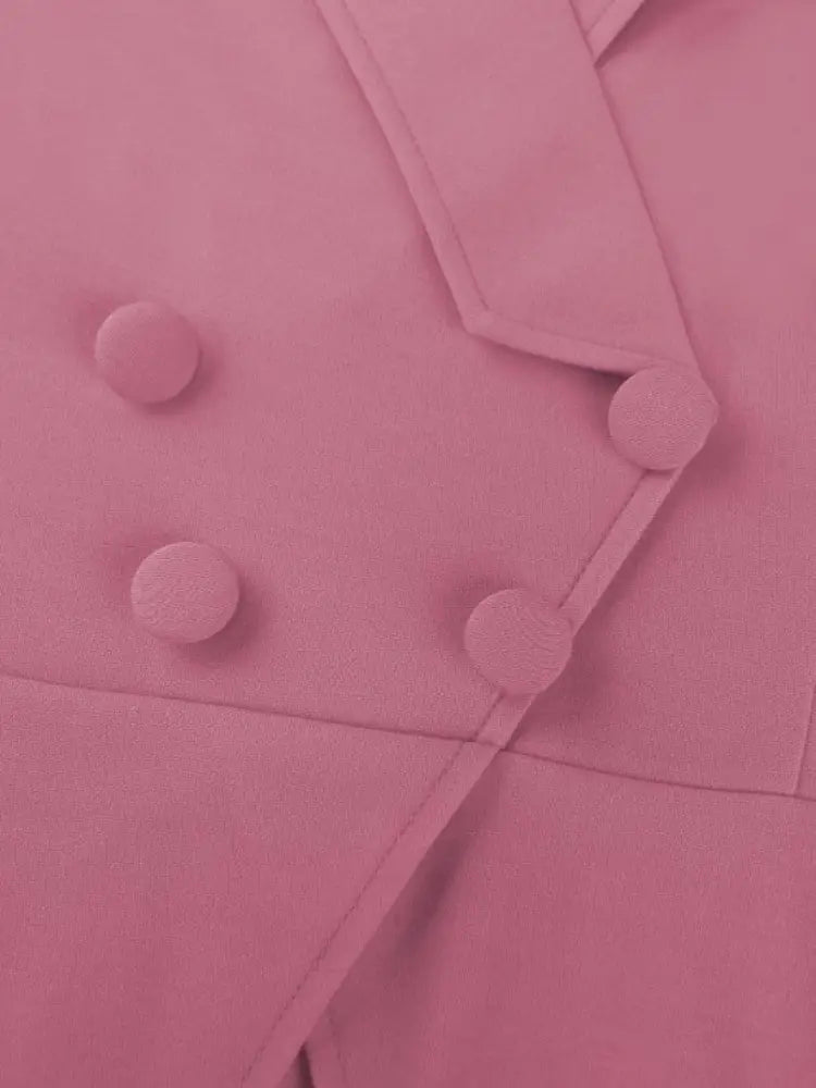 AOMEIDRESS A-Line Pleated Office Dress V-Neck Short Sleeve Button Up Pink / S