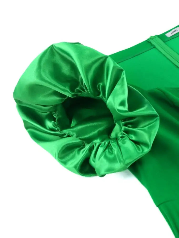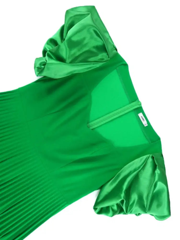 AOMEIDRESS Irregular Pleated A Line Dress Sweetheart Neck Puff Sleeve - Green / S is backordered and will ship as soon as it is back in stock.