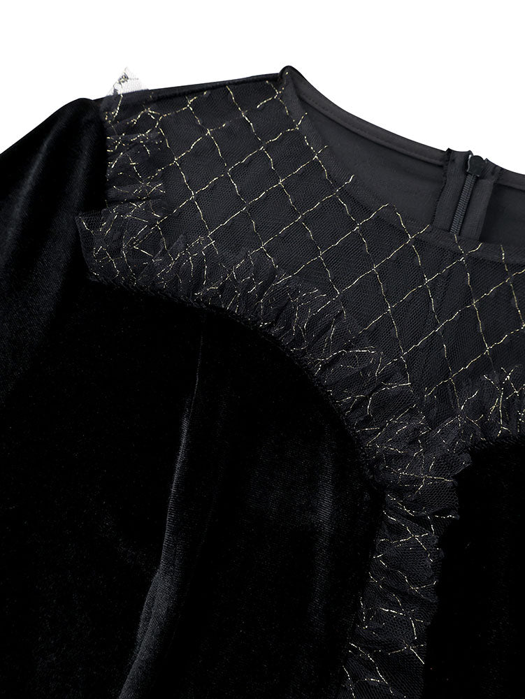 AOMEIDRESS Elegant Black Velvet Dress Tulle Bodycon Evening Party