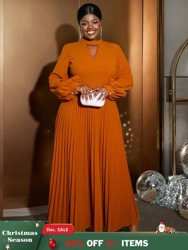 AOMEIDRESS O Neck Cut Out Chest Elegant Lantern Sleeve Pleated Dress