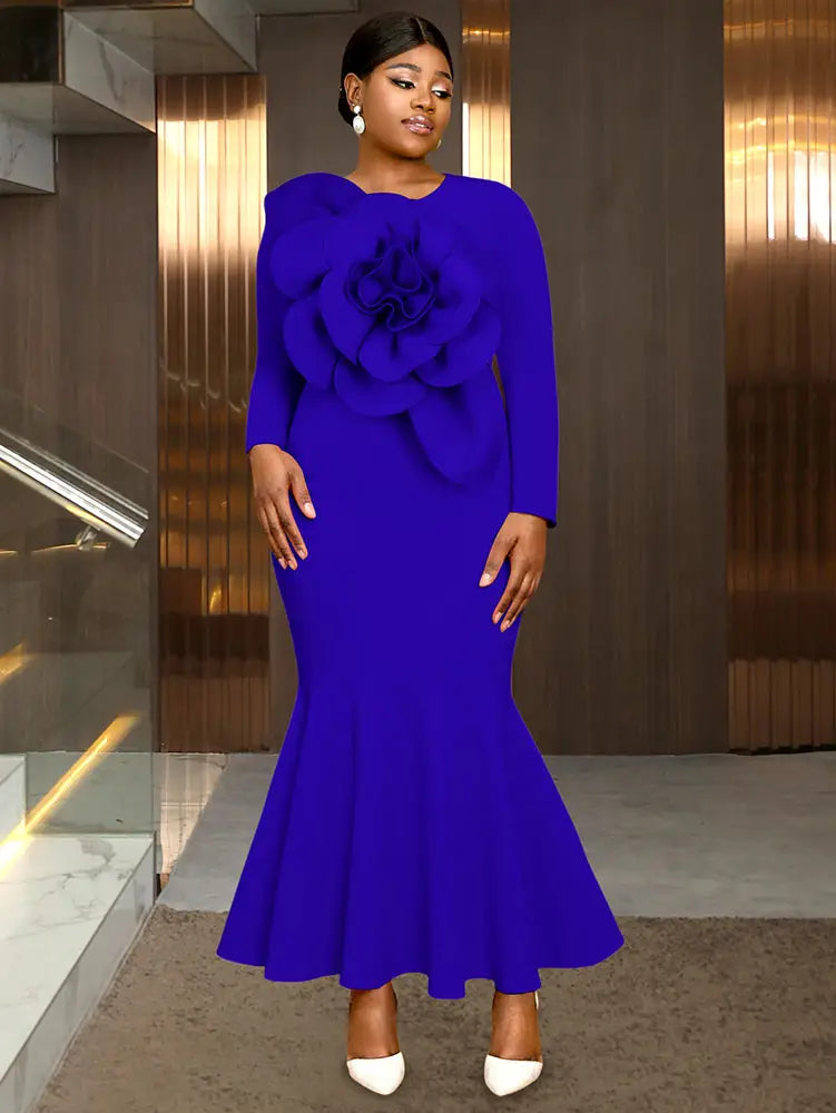 AOMEIDRESS Elegant Pink Maxi Mermaid Dress with 3D Flower for Wedding - Pink / S is backordered and will ship as soon as it is back in stock.