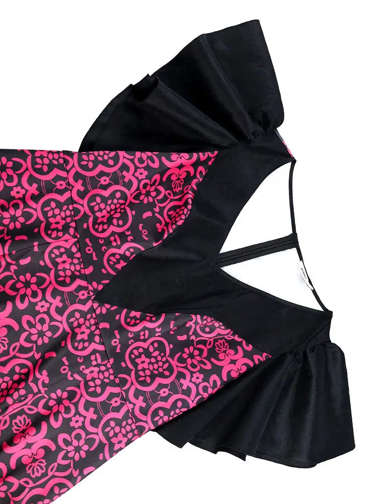 AOMEIDRESS Elegant Print Party Church Dress with Short Ruffle Sleeve - Rose / S is backordered and will ship as soon as it is back in stock.