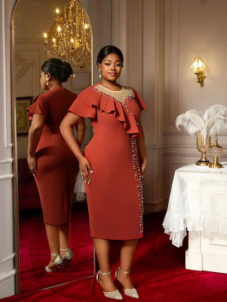 AOMEIDRESS Luxury Dress Grace Embroidered Flares Butterfly Sleeve - BrickRed / S is backordered and will ship as soon as it is back in stock.