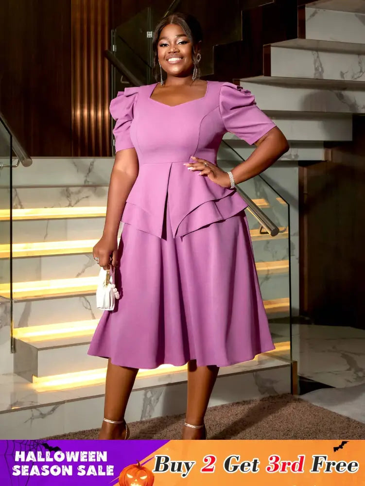 AOMEIDRESS Purple Wedding Party Outfits Short Sleeve Commuter Elegant